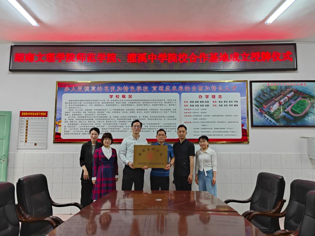 (通讯员刘念)4月14日,湖南文理学院“乡村教师协同发展研究基地”授牌仪式在常德市鼎城区灌溪镇中学举行,湖南文理学院师范学院院长高飞等出席仪式。