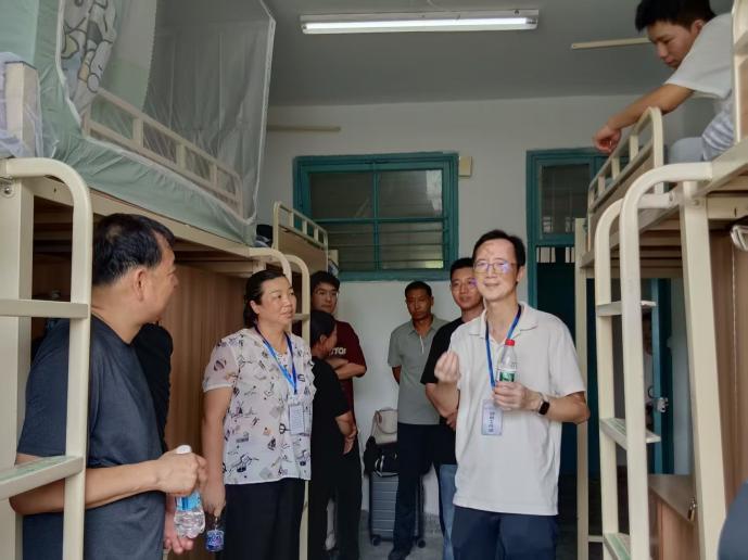 (学院党总支书记高飞、副书记江亮亮来到新生寝室并与学生、家长亲切交流)