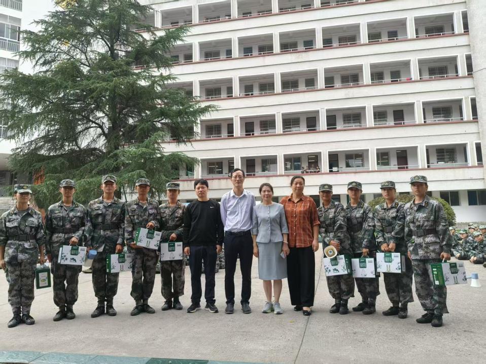 (学院领导为军训团教官送上慰问品)