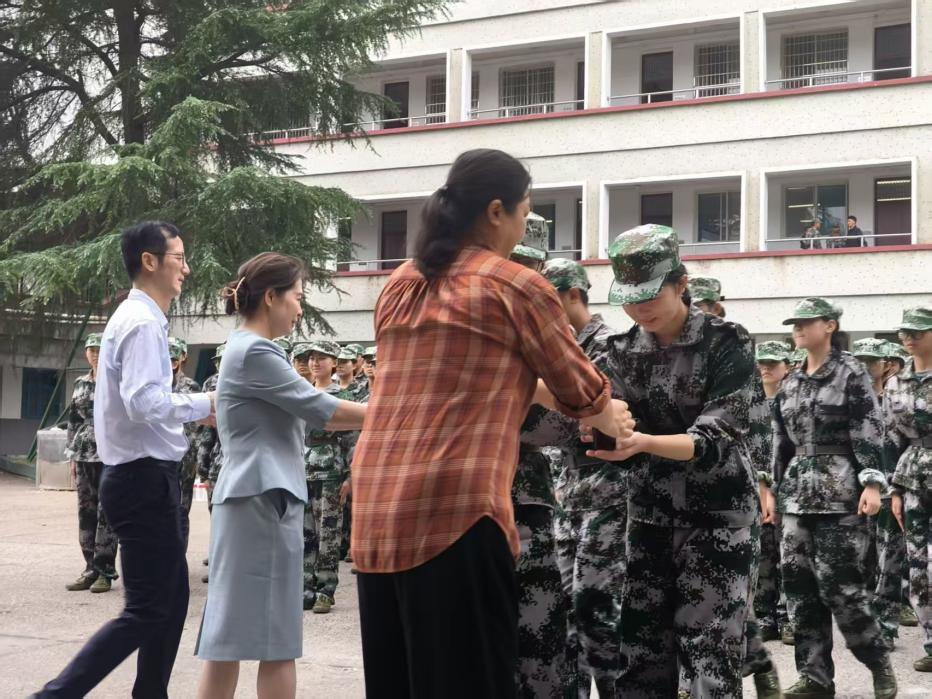 高飞对同学们在军训中的表现给予充分肯定,他表示,军训是大学的第一课,有助于同学们养成良好的纪律观念、协作精神与坚毅品质。谌晓芹强调,同学们在日常训练中展现出的专注与坚持,彰显了新时代学子的责任担当。随后,领导们为教官团送上精心准备的慰问品,向辛勤付出的教官们致以诚挚的问候与感谢。