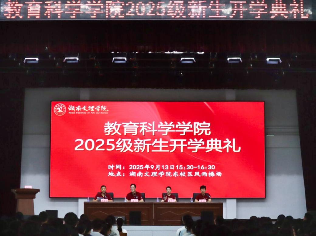本网讯(通讯员 张一弛 张菲琼)9月13日,教育科学学院2025级新生开学典礼在东校区体育馆举行。教育科学学院党总支书记高飞、院长谌晓芹、党总支副书记江亮亮、副院长卓进、部分辅导员与教师代表出席典礼,2025级全体新生参加典礼。典礼由江亮亮主持。