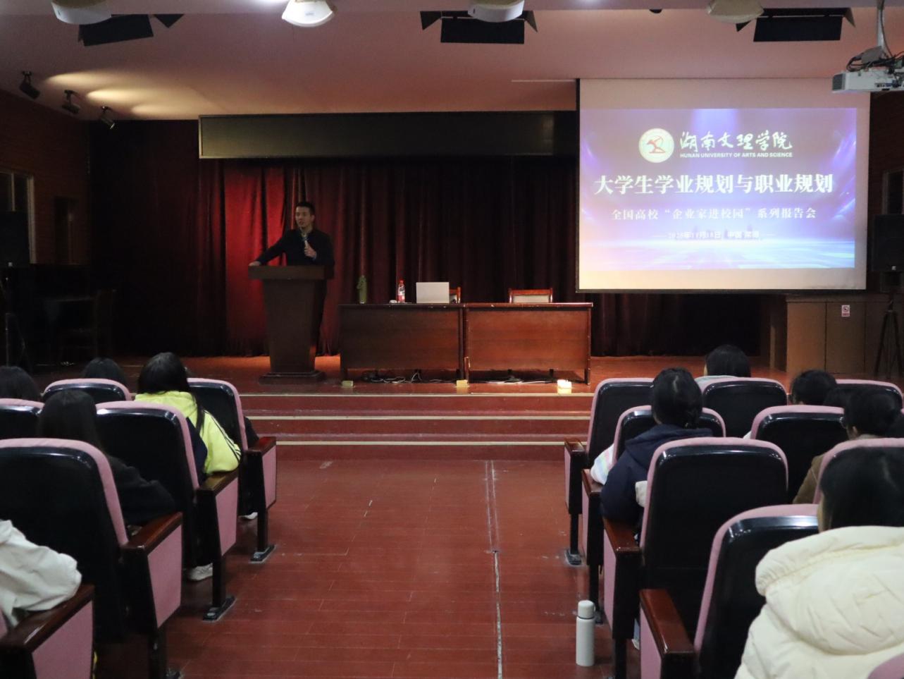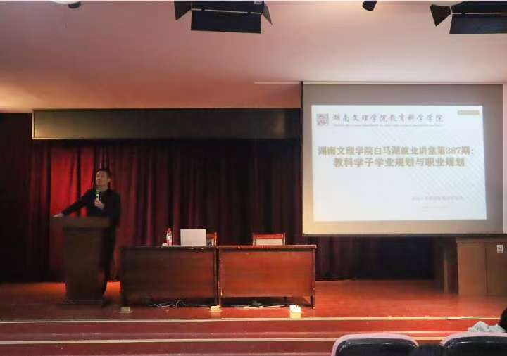 本网讯(通讯员张一弛张凯悦)面对未来,如何将今日的学业与明日的职业有效衔接?2025年11月18日,一场以“大学生学业规划与职业规划”为主题的专题讲座在湖南文理学院东校区多媒体报告厅开讲。本次活动系“白马湖就业讲堂”第287期,由教育科学学院主办,特邀湖南省名师领航科技有限公司高级讲师吴振华担任主讲,为学子们指点迷津,擘画未来蓝图。