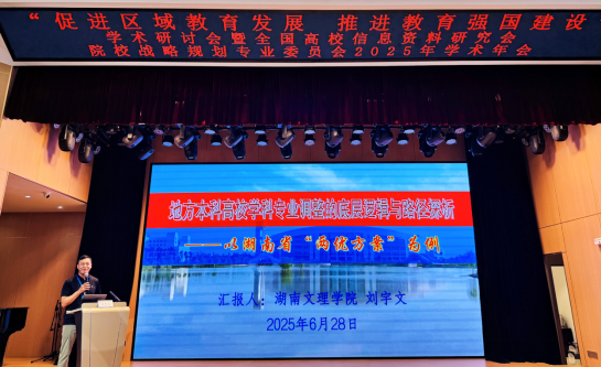 本次学术研讨会为全国高校信息资料研究会院校战略规划专业委员会2025年学术年会的重要组成部分,为地方本科高校学科专业调整提供了新的思路和方法,也为促进区域教育发展、推进教育强国建设搭建了一个良好的交流平台。湖南文理学院将以此为契机,进一步加强学科专业建设,提高教育教学质量,为培养更多适应社会需求的高素质人才而努力奋斗。(一审 卓进 二审 谌晓芹 三审 高飞 )
