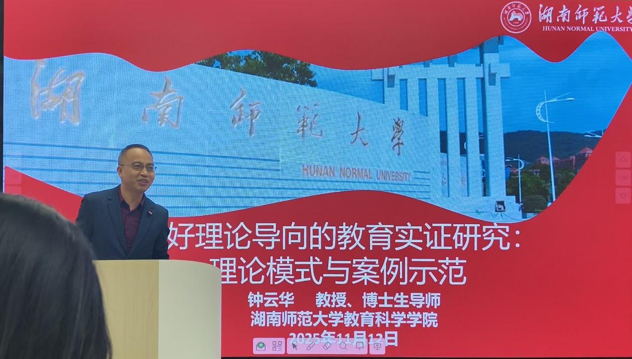 (通讯员 韩钰婷 李怡兴)11月12日,湖南师范大学教育科学学院钟云华教授应邀莅临我校,为研究生作题为“做好理论导向的教育实证研究:理论模式与案例示范”的学术讲座。讲座聚焦教育实证研究的方法体系与实践路径,为我校研究生搭建了优质的学术交流平台。