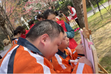 活动期间,来自师范学院和数理学院的志愿者帮助残障学员在社区种植绿苗,播下春天代表生命的种子。志愿者“一对一”牵着学员前往屈原公园赏春,引导学员用彩笔为植物花卉作画,一同感受春天的生机与活力。西城阳光家园的学员平平正举着自己刚完成的画作骄傲地展示给师范学院志愿者陈雯敏,说:“我画的向日葵好看吗?”眼中充满了平日少有的兴奋。数理学院志愿者窦晓敏带来了“植物大战僵尸”图画,游戏的趣味性大大激发了学员的绘画兴趣。活动中,青年志愿者秩序优良,耐心温柔地引导学员,传递社会关爱,展现了新时代志愿奉献精神和我校学生的丰厚涵养。