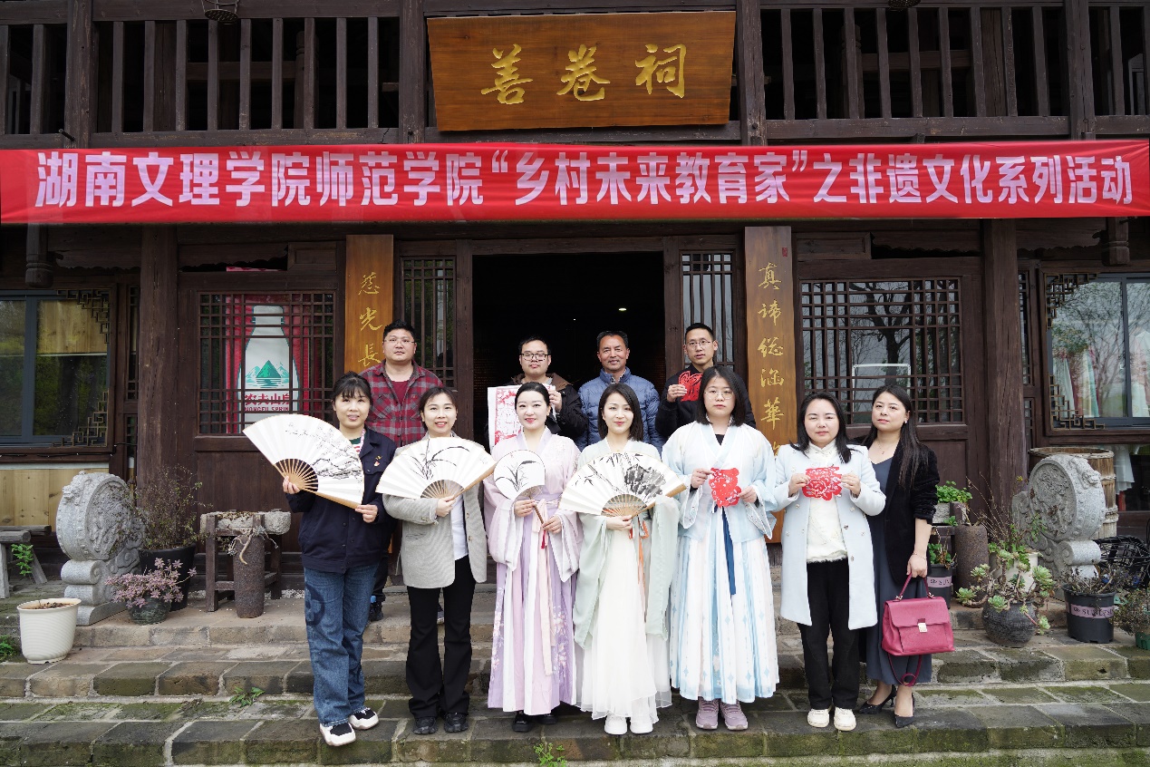 2023年3月26日,湖南文理学院师范学院师生一行六人来到常德德山的永丰社区的善卷故里非遗研习基地,开展了主题为:师范学院“乡村未来教育家”之非遗文化创设系列活动。带队美术老师涂毅杰的体会是:“让这些未来的乡村教师从做中学,把非遗文化艺术融入生活,学生用自己创意的作品诠释了中华民族优秀传统文化的根脉就是乡土文化。”此次活动是以剪纸、书法篆刻、扇面手绘等传统艺术形式来做非遗文化的传播与推广,深受当地社区群众以及市民的欢迎和喜爱。(一审陈伟 二审 江亮亮 三审 董树军)