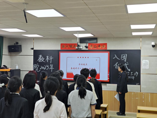 本网讯(通讯员张一弛 施源博 陈清彦)为进一步激发广大团员青年的使命感与责任感,凝聚青春力量,增强团组织力量,为团组织注入蓬勃活力。2025年5月19日,教育科学学院团总支在第一教学楼A402组织开展了2025年新团员入团仪式。学院团总支副书记杨子怡,部分学生干部以及2025年全体新团员参加了此次入团会议。