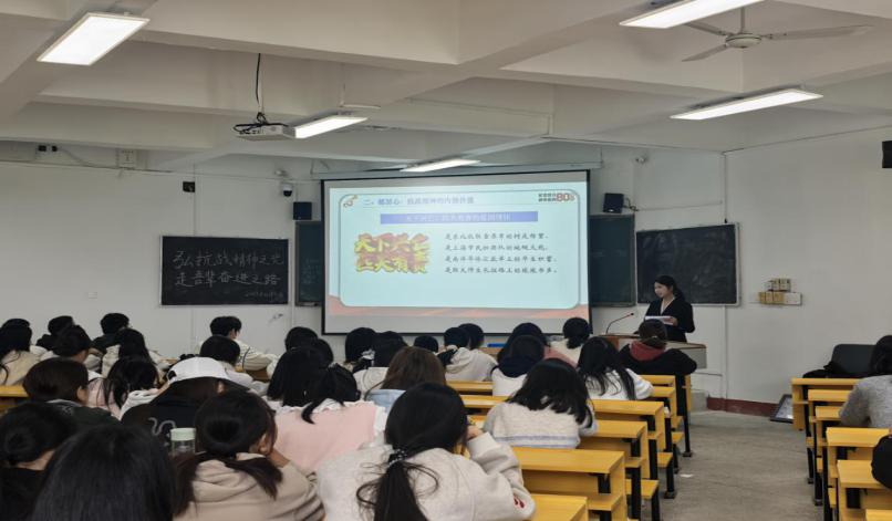 (本网讯张一弛朱珍宣)为纪念中国人民抗日战争暨世界反法西斯战争胜利80周年,传承抗战精神,赓续红色血脉,2025年11月4日上午10点,湖南文理学院党的创新理论宣讲团走进教育科学学院面向2025级新生开展“弘抗战精神之光,走吾辈奋进之路”主题宣讲活动。